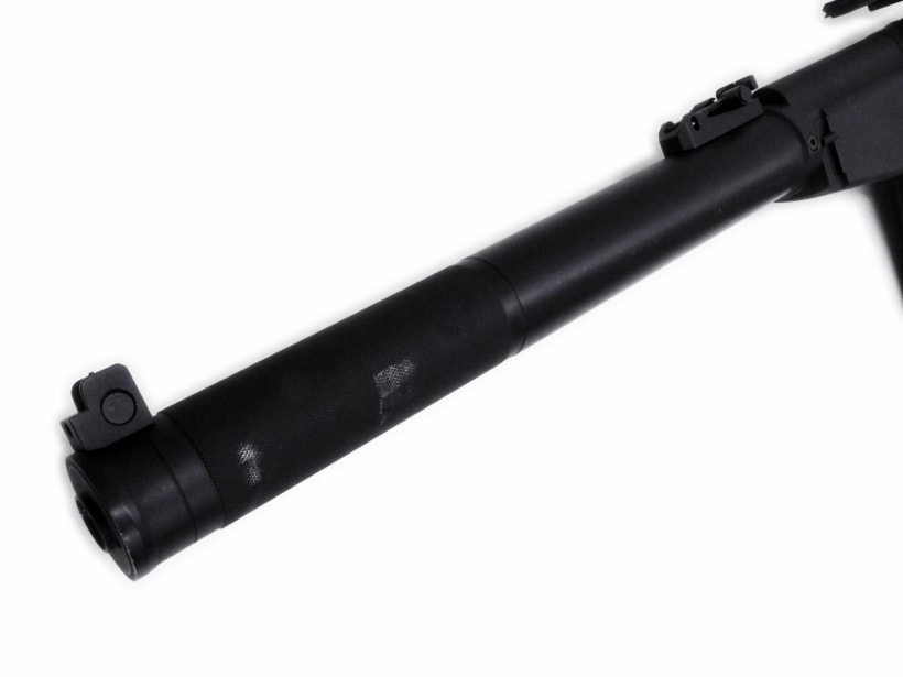 実銃ではバレル全体を覆うサプレッサーと低速重量弾を組み合わせることにより、中〜近距離での高いストッピングパワーと消音性を誇る。