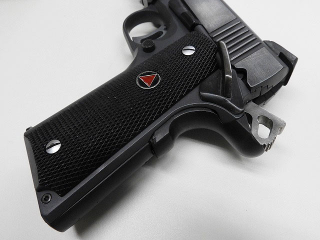 強力な10mmオート弾を使用する、グリップの赤三角のメダリオンが印象的なコルト社製デルタエリート。実銃が87年発売され、MGCは88年にこの商品をいち早くモデルアップ。固定スライドと独自のオリジナルアクションが特徴です。