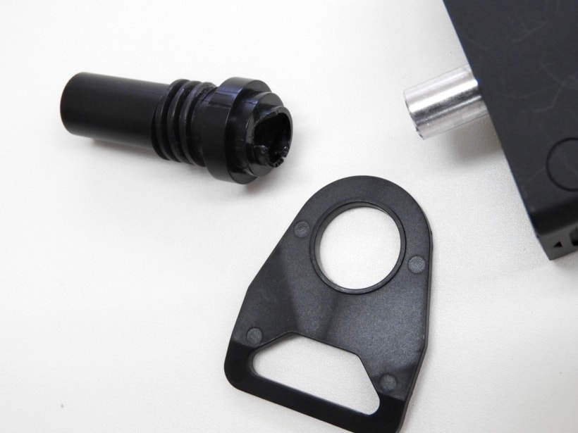 トリガー前方のスペースに作動用の単4電池をスッキリ収納。