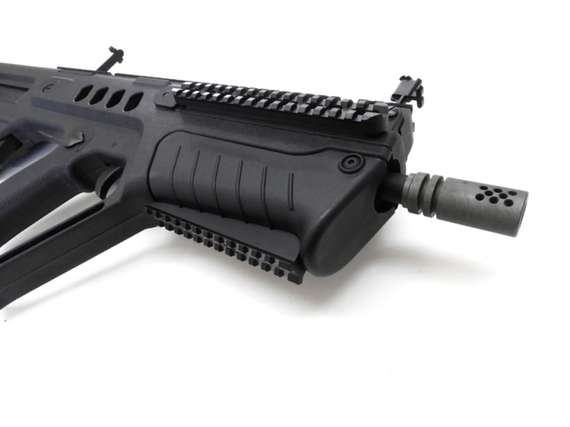 [S&T] Tavor-21 PRO Ver フラットトップ カービンモデル BK 発射不良若干 (訳あり) 製品参考画像5 フロント部分には右側にサイドレールがあり、アンダーレールも搭載。フラッシュライトやフォアグリップなどのカスタムの幅が広がる。