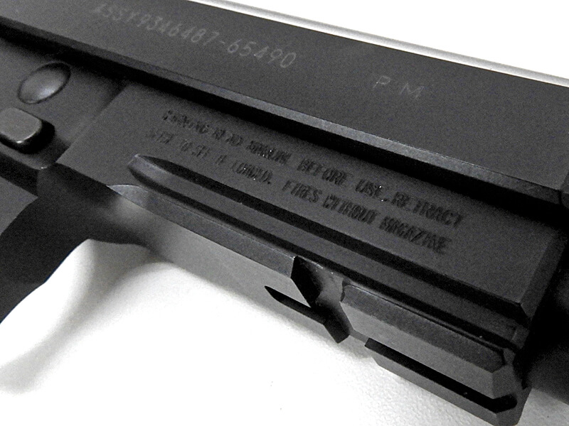 アンダーマウントレイルを搭載し、グリップ前後にチェッカリングを施された米海兵隊仕様のM9がこの「M9A1」。ハイグリップ&チェッカー仕様のフレームに、小粋な六角グリップスクリュー。銃口部のステップド・クラウンの再現など、さりげないカスタムテイストが魅力のコンバットピストル。システム7採用でブローバックも迫力のあるものとなった。実銃はこんな銃
