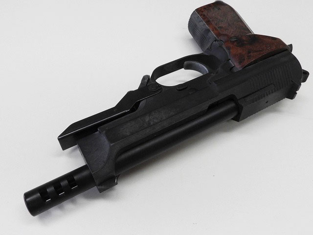 ハンドガンの場合は全体を金属性とする組み換え、エアソフトガンの場合は射出エネルギー0.98J以上にする改造を行うと銃刀法違反となります。HFC134a仕様のガスガンにCO2用マガジンを組み込む、スライドを金属製の物に差し替える等、簡易な改造でも罪に問われる可能性がございますので、絶対にお止めください。