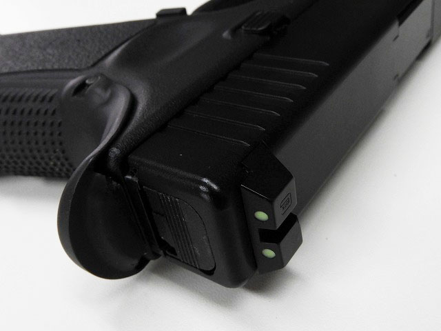 GUARDER製 ビーバーテールグリップ、前後サイトがナイトサイトに変更済みカスタムG22。説明書は補足説明書のみ付属します。