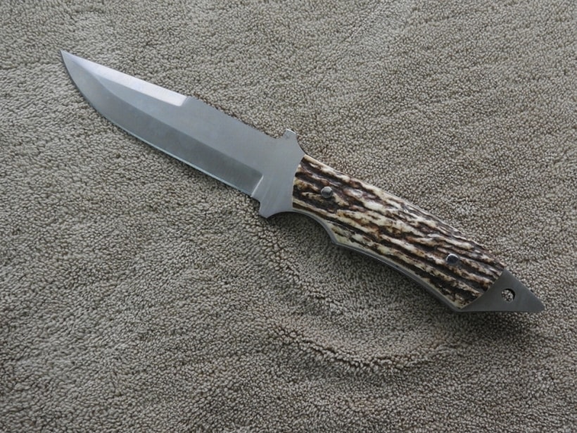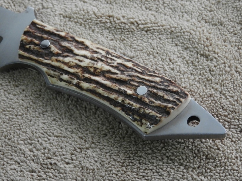 グリップエンドをはみ出す刃材に鹿角パネルを取り付けた形のスタッグナイフ。。AITOR社がスペインで製造していた時代の製品。
