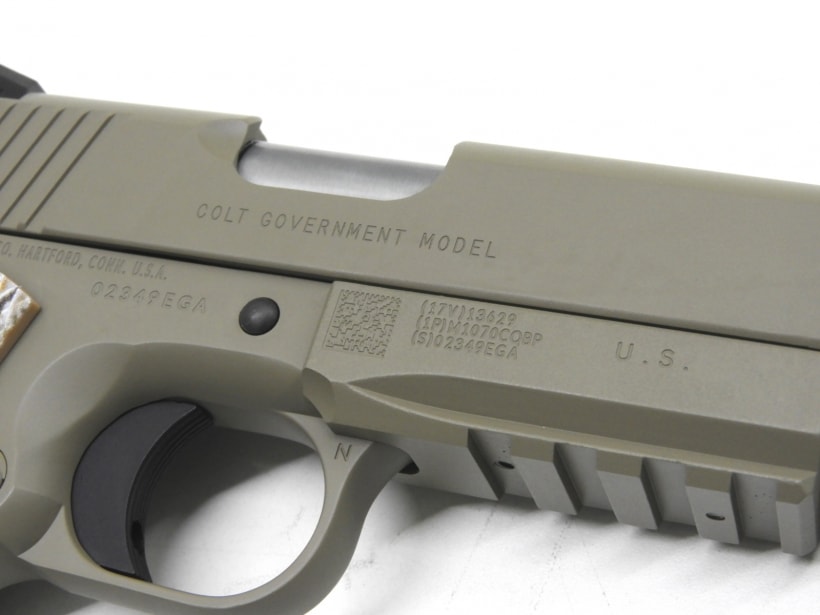 [WA] コルト M45A1 CQBピストル ガスブローバック (中古) 製品参考画像5 各種刻印は、彫刻機を用いてシャープに再現。
