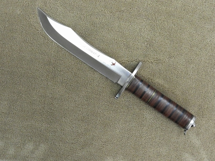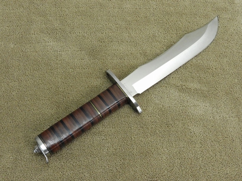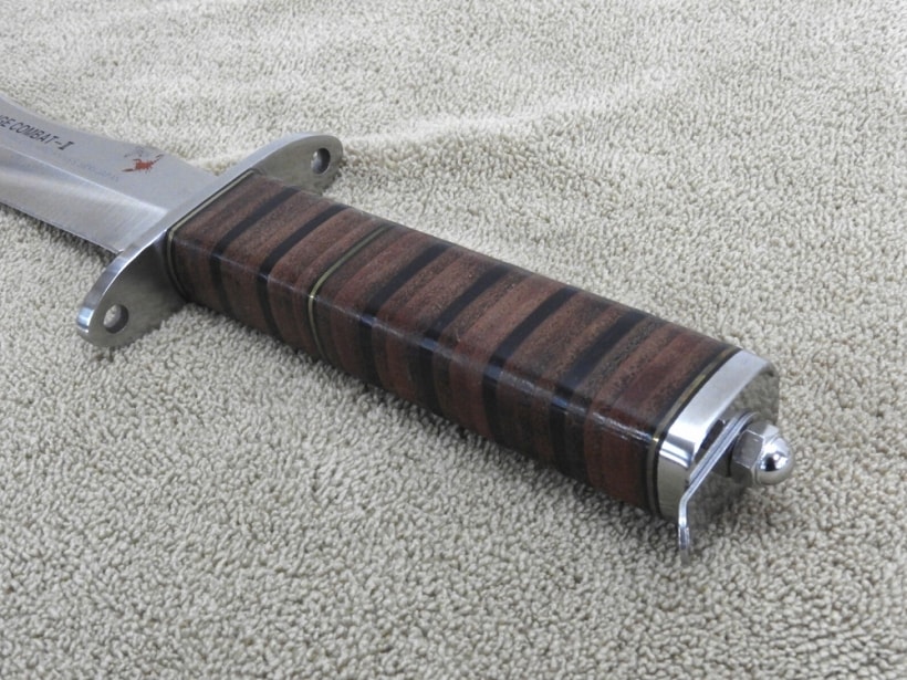 ハンドルにレザーワッシャーを採用し、高級感と実用性を両立させたコンバットナイフ。