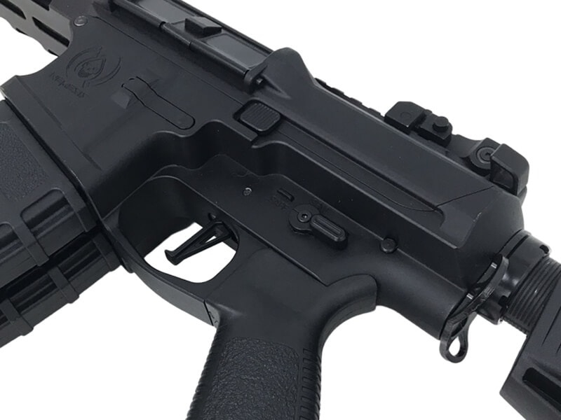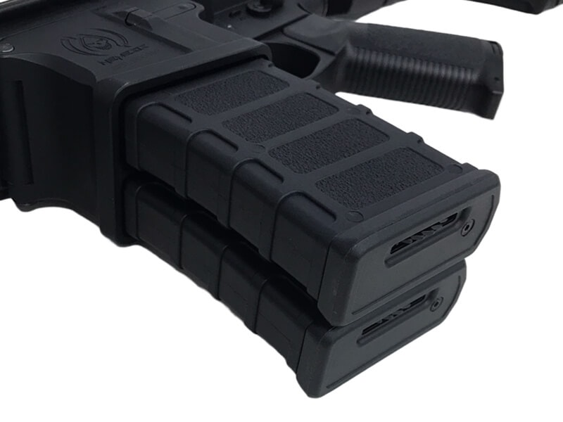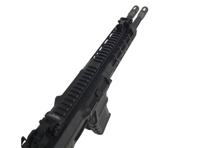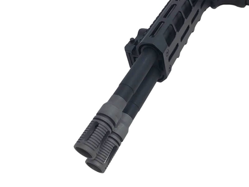 一般的なM4カービンを水平方向に連結したようなスタイリングを持ち、2組のバレル/チャンバーユニットとシリンダーを一つのモーターとピストンで駆動させるという非常にユニークなメカボックス設計により、1ショットで2発のBB弾を同時発射可能!