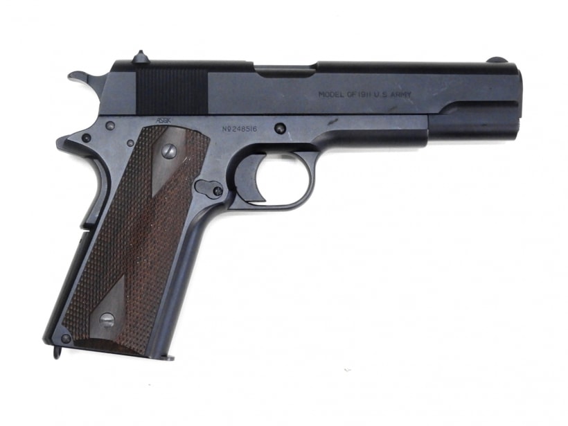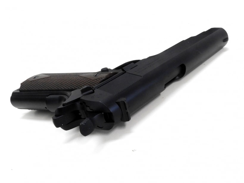 「A1」ではない1911。M1911A1と違うのはトリガー後方のリーフカットが無く、ストレートのハウジングでありトリガーもロングになっている。