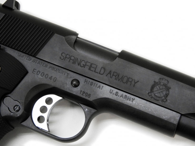 海兵遠征隊とフォースリーコンのために開発された銃。コルトM1911A1ミリタリーのフレームにスプリングフィールド社のスライドを組み合わせたモデル。カーボンブラック塗装!