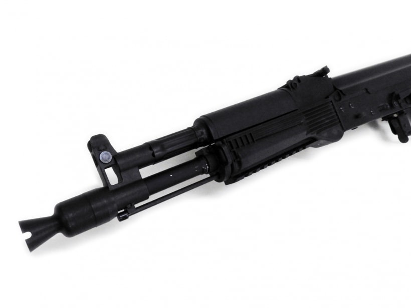 AK-74は、1974年にソビエト連邦軍が採用したアサルトライフルで、従来のAK-47系列の後継種。 内部構造はAKMを踏襲したもので、近代の流れに伴い口径を5.45mm(使用弾薬5.45x39mm弾)に小口径化している。
