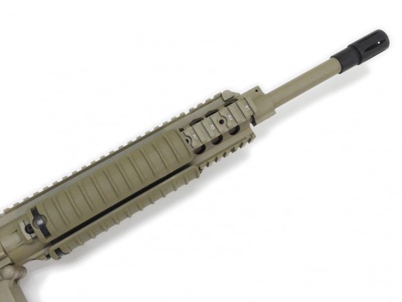米国の特殊作戦用小火器メーカー・KAC(ナイツ・アーマメント・カンパニー)社が製造を手掛ける、7.62mmオートマティックライフルの傑作『SR-25』シリーズの最新軍用バージョンをモデルアップ!レシーバーはマガジンキャッチ/セレクターレバー/ボルトキャッチなどのコントロール系が全てアンビデクストラス(両利き)使用となっており、利き腕を選ばずに使用可能。