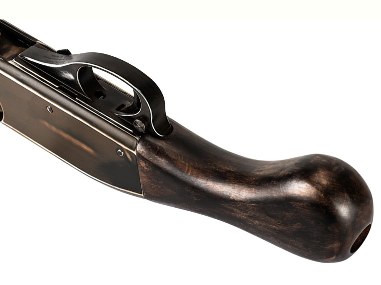 " Douchebag Battleworn ( デューシュバッグ バトルウォーン ) " は、リアルウッドのソードオフモデルでエイジング加工。一味違った「本物感」をお届けします。装弾数 4 + 1 発。