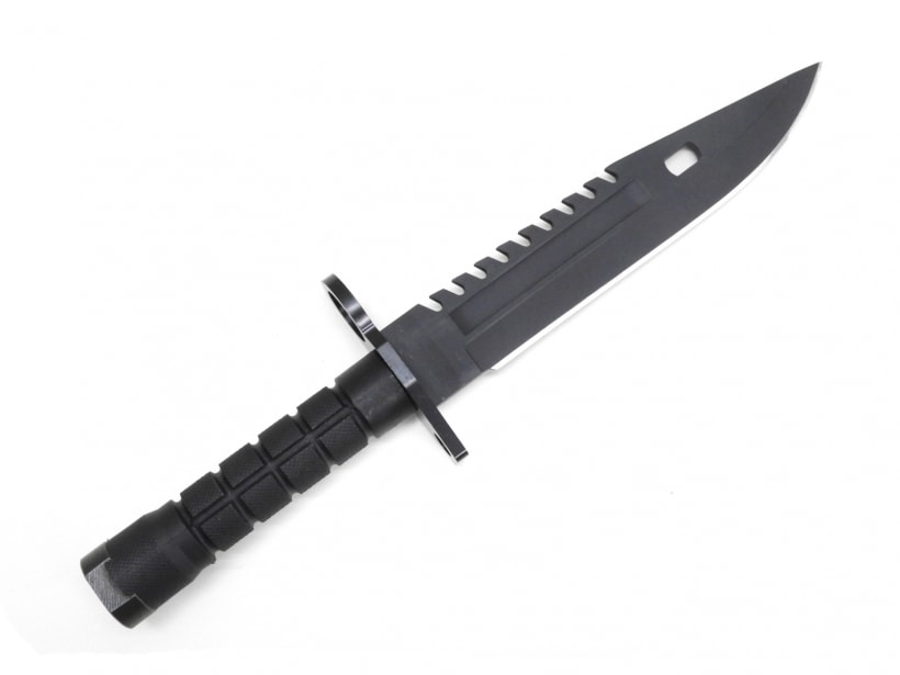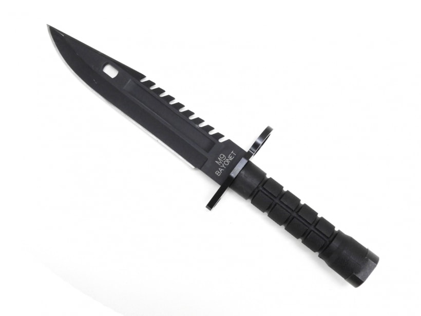 M9タイプを模した安価ながら本格的なコンバットナイフ。ブラックコーティングされたブレード背部にはノコ刃を持ち、ブラックのポリマー樹脂製のハンドルを装備している。