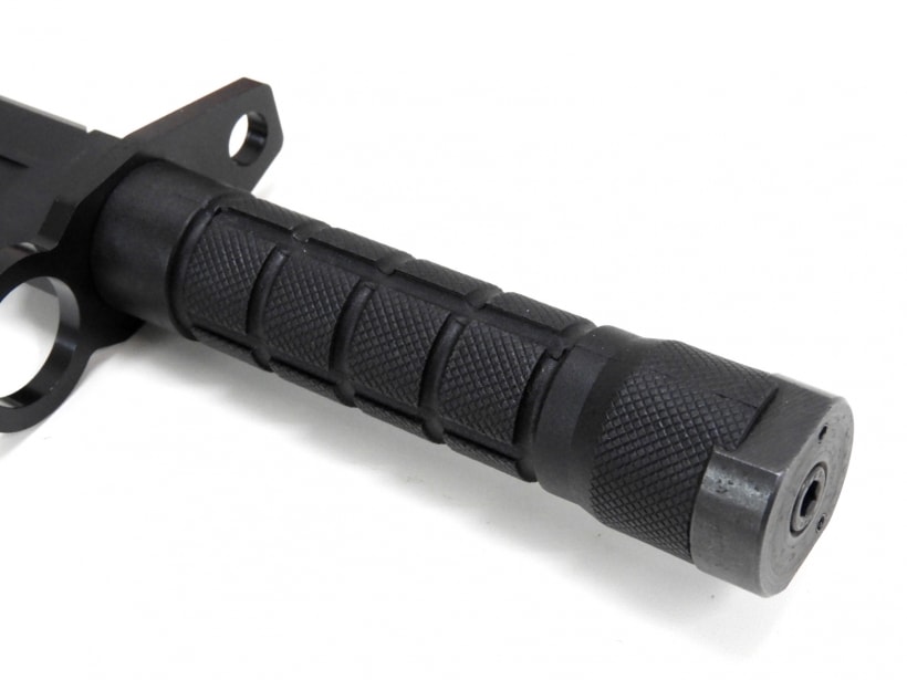 アメリカ軍で採用された画期的なM9MPBS(Multi Purpose Bayonet System:多目的銃剣システム)。近代の銃剣のニーズに合わせて銃の先に付けるだけではなく野外活動に伴う様々な目的に使用できるように設計されている。