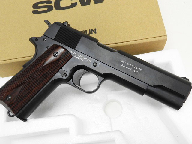 第一次大戦中の1915年、イギリス軍の武器購入委員会がアメリカコルト社より買い付けたM1911を再現したのが、当モデル=通称「ブリティッシュサービスピストル」。