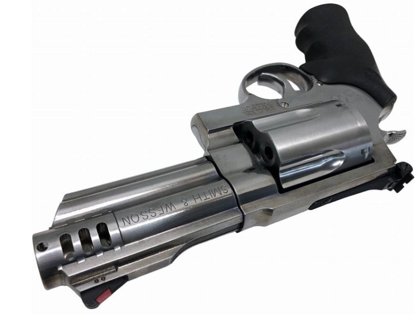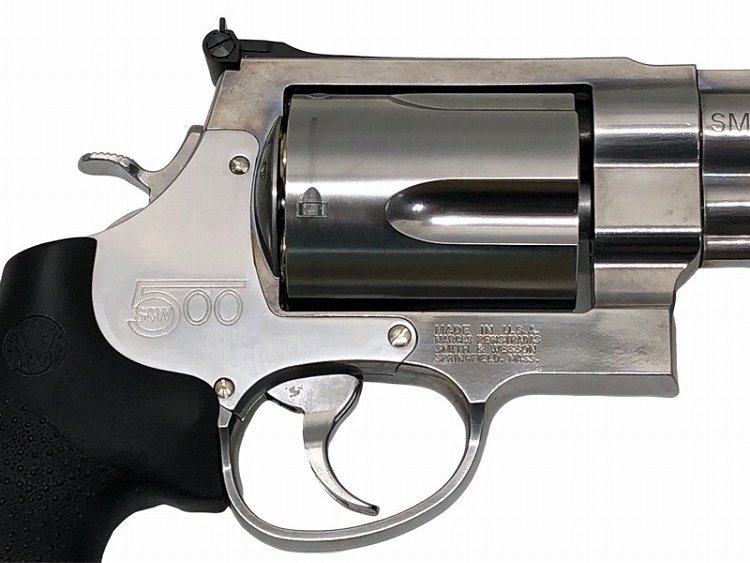 S&W社が2003年に発表した超大型回転式拳銃。市販品としては最強の拳銃弾「.500S&W」を使用しマズルエネルギーは.44Magnum弾の3倍(S&W社比)を誇る。そして膨大な反動に耐えうるため、フレームには他の大型拳銃を小型拳銃と見間違わせる程の、超大型Xフレームを新規開発し、その重量は拳銃と呼ぶには疑問を抱くほどである。 その強烈なインパクトは、一丁あたり1千ドル以上の高値にも拘らず、注文が全米各地から殺到し、発売当初は需要に供給が追いつかなくなる大好評を得て、S&Wの名を再び世に知らしめた。[MEDIAGUN DATABASE]