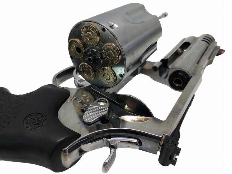 [タナカ] S&W M500 3+1in ステンレスジュピターフィニッシュ Ver.2 ガスガン (中古) 製品詳細画像 シリンダーはとても大きく、ガスチャージアダプターなしでガスを注入可能!
