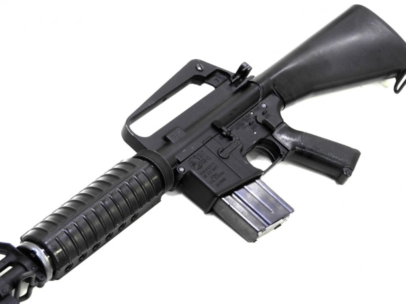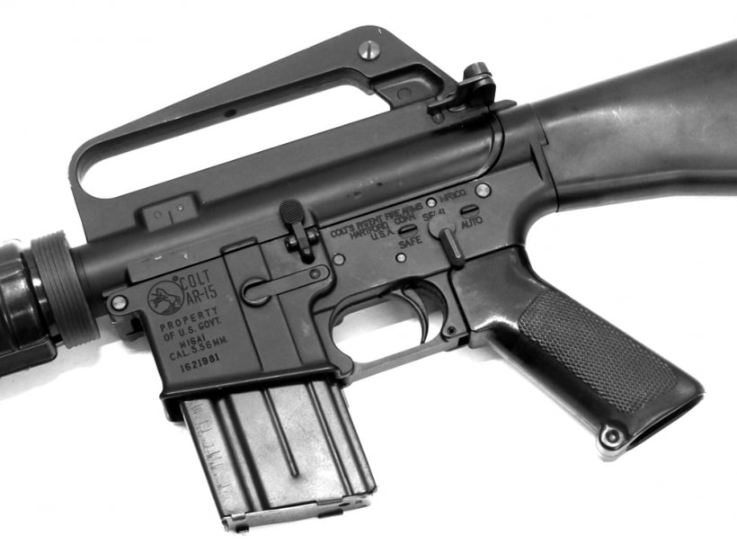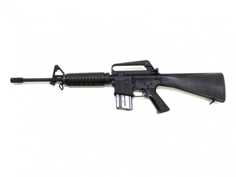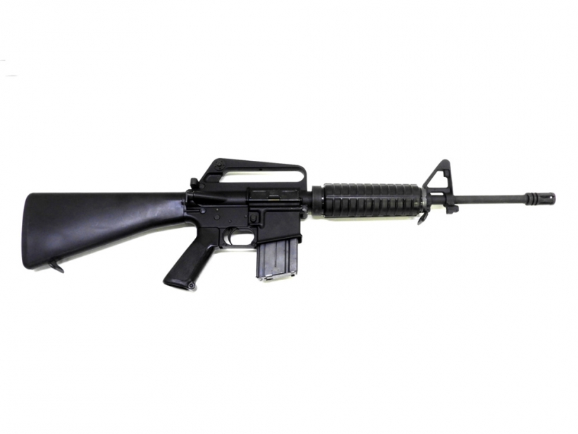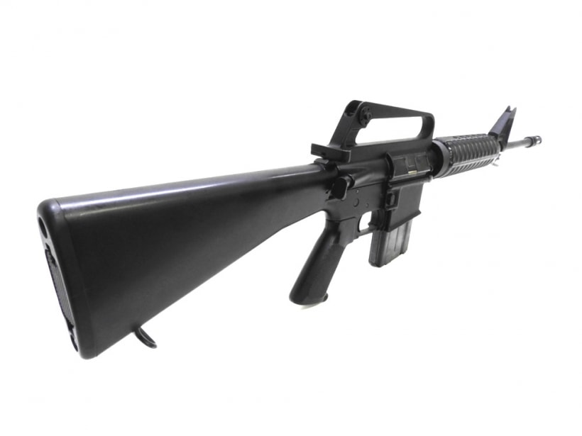 1950年代にコルト社が開発した本格的な突撃銃。AK47やドイツのG3などと肩を並べる3大歩兵銃のひとつM16A1はこれまでの銃とは違い木製パーツなどは一切使用せず、アルミ、鉄、プラスチックで作られた。またAKなど7.62mm弾が自動小銃のスタンダードであったが口径を小さくし5.56mm弾を使用した。ベト戦投入当初は不具合を頻発したがその多くは兵士のメンテナンスの怠りや、本来より火薬の量が少ない弾丸を使用していたため起こったものがほとんどであると考えられれいる。その後、整備の徹底や各箇所の改善で歴史に名を残す名銃として完成した。