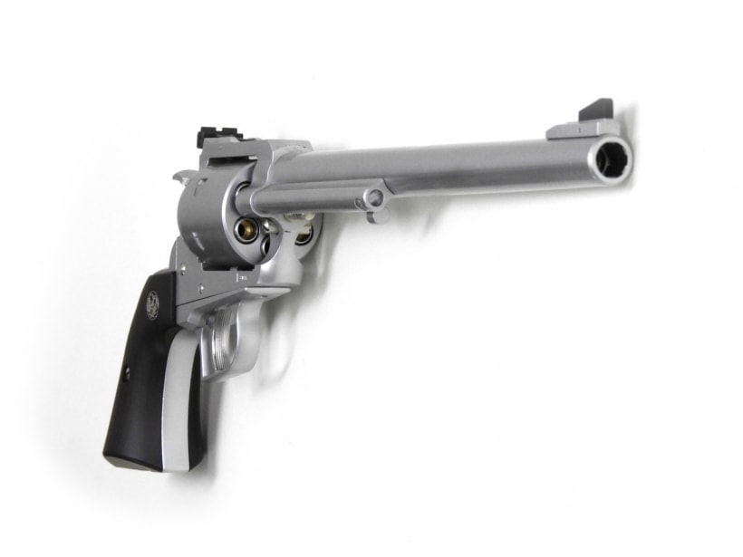 大型シングルアクションリボルバーの銘銃。ノンフルートシリンダーや後部が角張ったトリガーガードなど特徴的。HWにシルバー塗装を施し「重いシルバー」を実現。