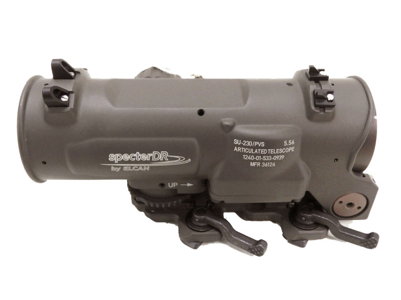 [NB] ELCAN SPECTER DRタイプ スコープ 1-4倍切替 FDEカラー ショート 1倍~ ピカティニー ビルドインマウント イルミネーション (中古) 製品詳細画像1 ELCANプリント刻印入り。