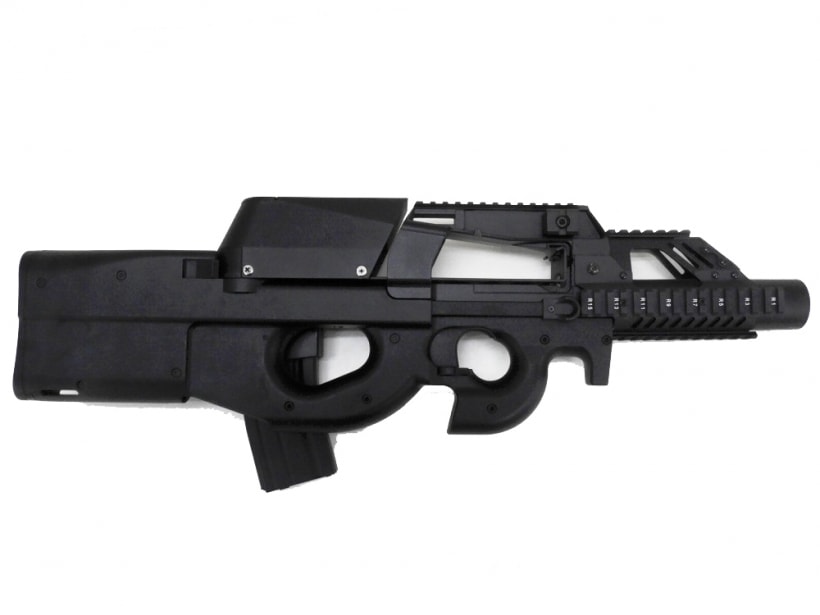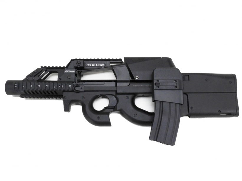 1980年代、ボディアーマーの普及と高性能化により、軍の後方部隊が持つ護身用火器(拳銃、短機関銃)の威力不足がささやかれ始めた。しかし貫通力に優れる突撃銃では、何かとかさばるため携行は難しい。そこでアメリカ軍は『拳銃弾より貫通力に優れ、突撃銃より取り回しの良い銃』の製作を各社に依頼。当時APDWと呼ばれたこの要望に対して、FN社が1987年に要求仕様を満たした銃を開発した。それがPROJECT-90こと「P90」である。 P90は幾つもの画期的な特徴を備えている。銃本体はプラスチックを多用したブルパップ形状だが、銃下面に排莢口を設けることで射手の利き手を選ばず、左右臨機応変に構えなおすことを可能にしている。また、マガジンは50発というハイキャパシティながら、レシーバー上部に銃身と平行に配することで、本体から大きく張り出すことなくコンパクトにまとめられている。弾丸は横向きに複列装弾されているが、バネによって90度回転させることで本体薬室に送弾する。 さらに、P90は新規開発したSS90(後にファイブセブンと弾の共通化をはかったSS190)弾を採用している。この弾はライフル弾を短小化したようなボトルネック形状をしており、サイズこそ拳銃弾並だが貫通力に優れる。さらに人体などの柔らかい物体に命中すると、弾が横転して衝撃を物体に最大限伝えようとする性質が有るためストッピングパワーも優れ、拳銃/ライフル弾両方の利点を兼ね揃えたものとなっている。 1996年にペルーで発生した日本大使館占拠事件において、ペルー軍、警察の突入部隊の一部がP90を使用していた事で知名度も高まり、室内戦闘が多い特殊部隊用の火器としても注目されている。また、アメリカ海軍のSEALがMP5に替わるCQB用火器として、各種アクセサリーデバイスの取り付けが可能な特別仕様モデルを、実戦形式でトライアル中である。イギリス陸軍のSASは既にトライアルを終え、このP90を追跡潜入作戦に投入していることが確認されている。 従来のバリエーションとしては、光学サイトを廃してピカティニーレールを増設したP90TR(Triple-Rail)とP90Tacticalが存在する。またバレル下部の張り出しにレーザーポインターを内蔵したモデルも存在する。