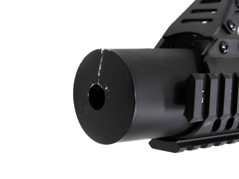 [S&T] P90 tactical/タクティカルBK (中古) 製品詳細画像2 サイレンサー内部にまで及ぶ、長めのインナーバレルが組み込まれている。