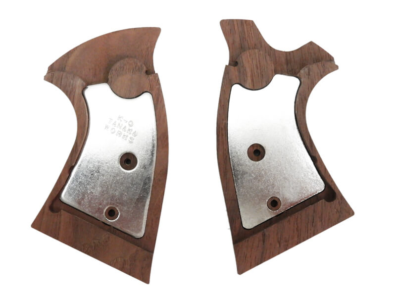 「リアルな重さ」を追求した、実銃世界を逆行するタナカ純正木製ウォールナットチェッカーグリップ。