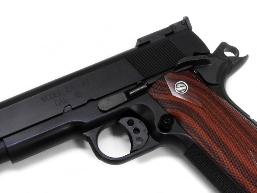 1980年代にスティールチャレンジで大活躍したスプリングフィールド ナストフ.45。コンペンセイター、マグウェル、アンビサムセフティなどのカスタムパーツが特長的なモデルです。