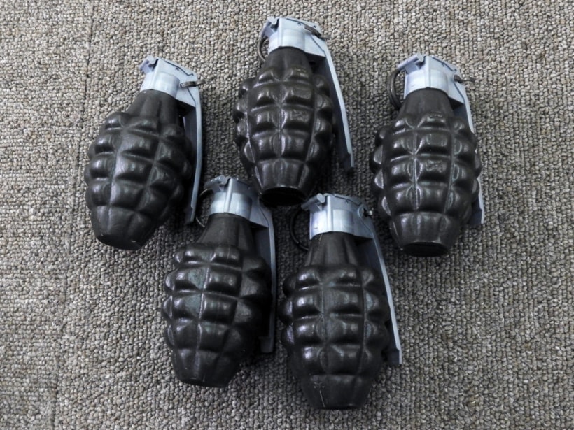 手榴弾型のアイテムはBBグレネードと思われます。写真では5個ですが全部で6個あります。