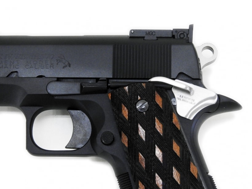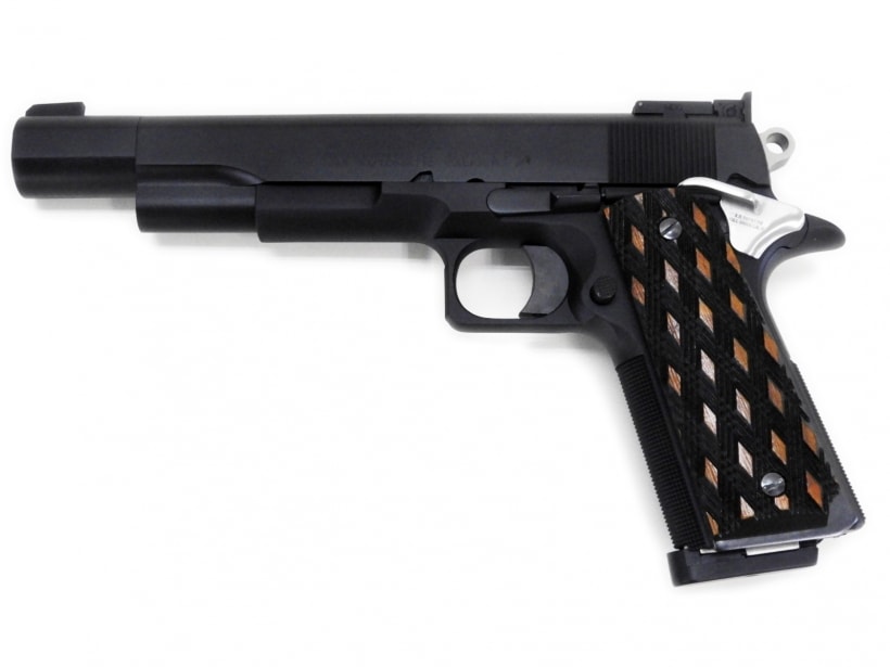 ビアンキカップのコルトスピードイベント等でボーリングのピンを撃ち落す競技にカスタムされたガン。MGC製による希少な発火式モデル。