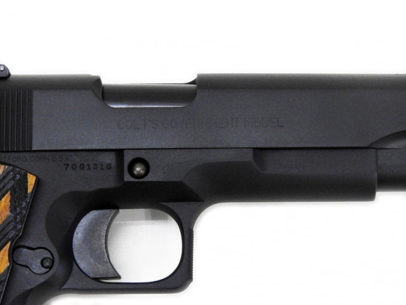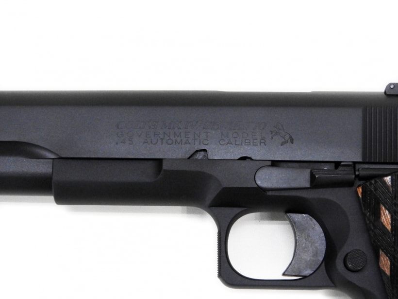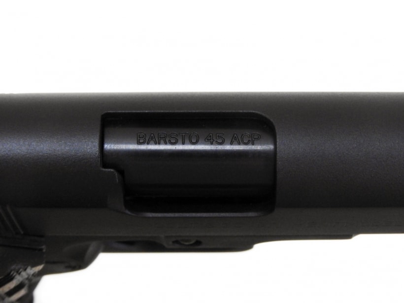 ABSプラスチックの独特のテカリのあるスライド、左面にはシリーズ70刻印。バレル前方付近にはクラークボーリング刻印。 右面はコルトガバメントモデル刻印。