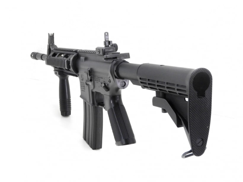 アメリカの特殊部隊統合軍SOCOMに開発依頼を受けて、コルト社が開発したM4A1にナイツ・アーマーメント社がR.I.Sを搭載し完成させた。小型であることや火力から密室接近戦用(CQB)ライフルとして、対テロリスト部隊や特殊部隊が特に好んで使用している。上下左右にレールシステムがあり極めて汎用性が高い。そのオプションパーツは隊員が自費で購入することを条件に個人の裁量で使用することが認められている。 また、日本のSATでも89式小銃に替わるものとして配備が噂されている。