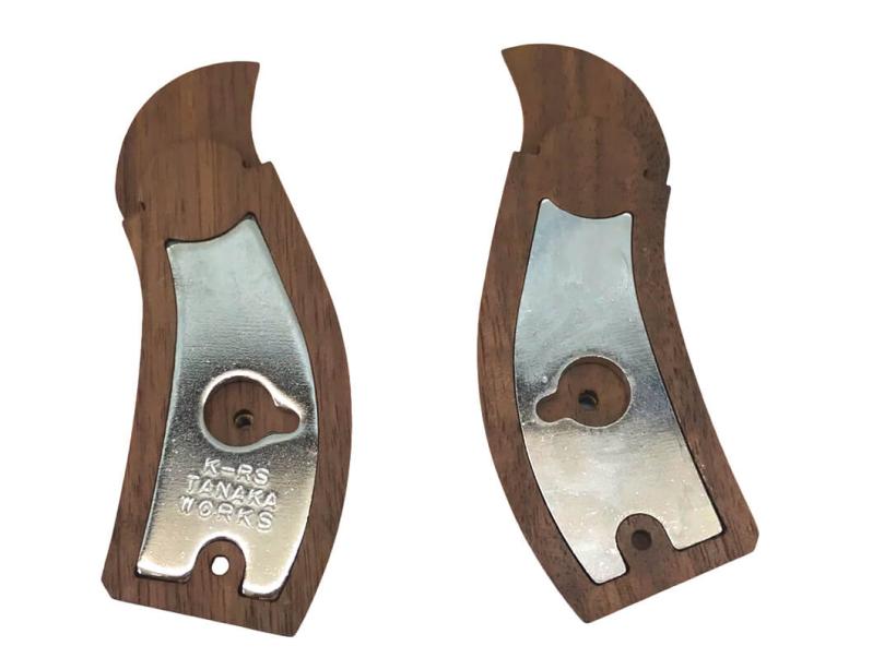 [タナカ] +Weight グリップシリーズ ラウンドタイプ ウォールナット チェッカーグリップ Kフレームラウンドバット用 (新品取寄)の販売ページ|エアガン.jp
