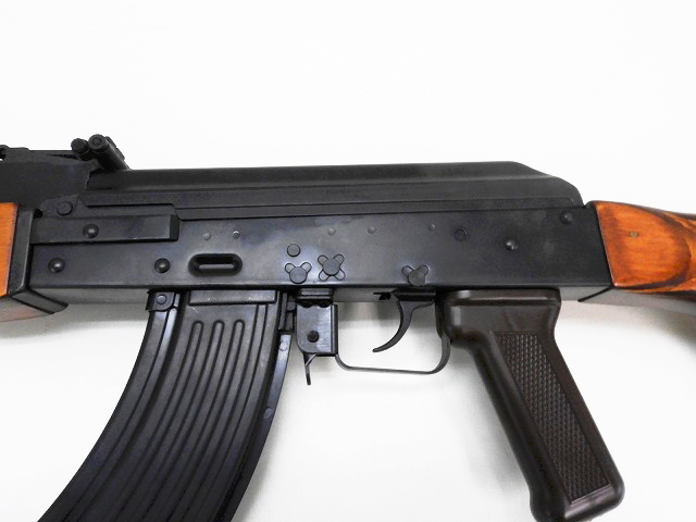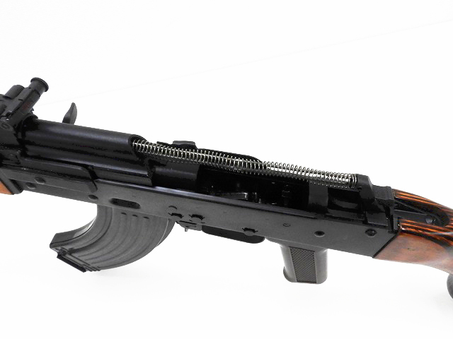 AKMから軽機関銃への変更にあたり、フルオート連射の際の反動軽減とバレル変形防止のためバレルを厚くし、 レシーバーもAKMに比べて厚く作られました。 バレル等の金属部分はスチールを使用しており重厚感あふれる仕上がり。