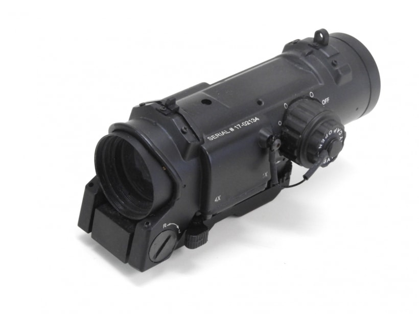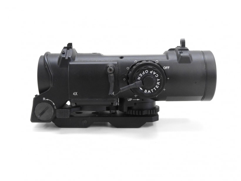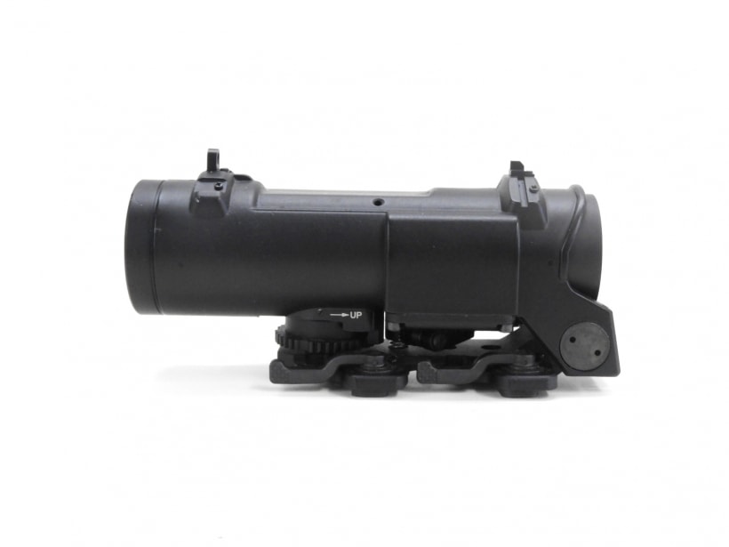 エルカン・スペクターDRのレプリカスコープ。実物のSpecter DRはレバーを移動させることで4倍のサイトから1倍のCQBサイトに切り替えできるが、これは4倍固定倍率。(切り替えレバーはダミー)