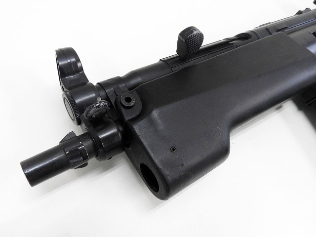 カスタムハンドガード等付いた初期のMP5。初速約75m/sサイクルは遅めになっていますが動作可能。