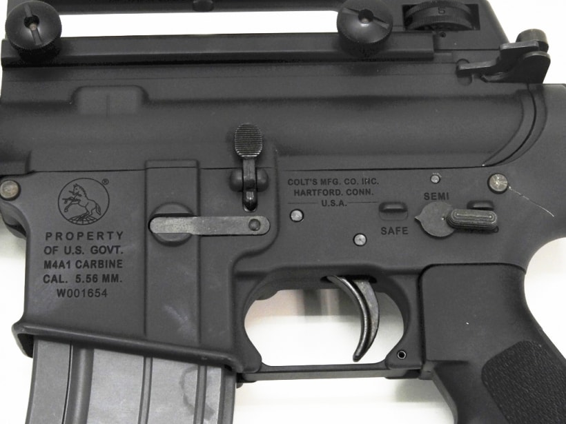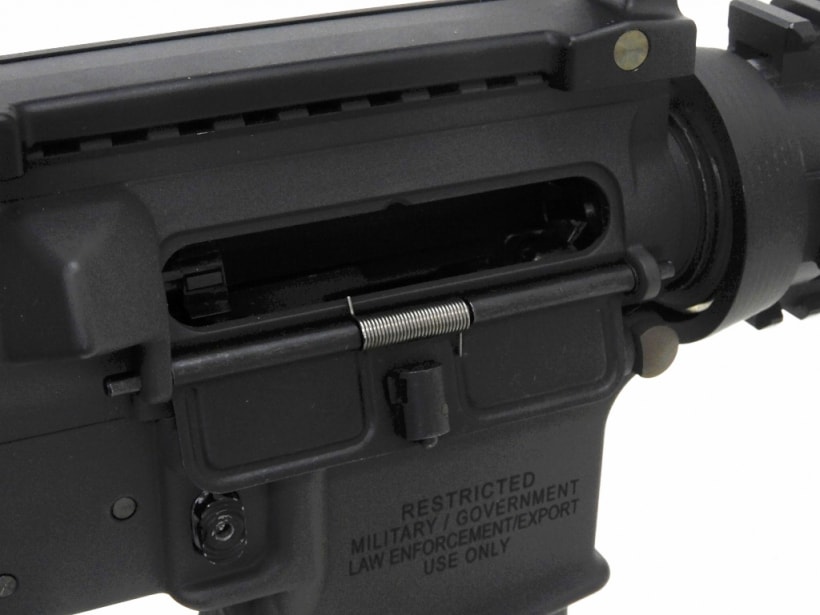 定評のあるWAのブローバックシステムがさらに進化しており、各部もさらにタフに生まれ変わって満足できる仕上がりになっている。M4A1スーパー・バージョン=機関部に搭載された新開発のハードリコイルユニット。耐久性が向上し、黒く染め仕上げされたボルトキャリア後部には、真鍮製のウエイトを追加。 この固定されていないフリーブラスウエイトが、ボルトキャリアにややディレイして作動。バッファーチューブ内に配されたラバー&メタルバッファーとの相乗効果で、今まで以上に"ズドン"と、迫力を増したリコイルショックを生み出します。