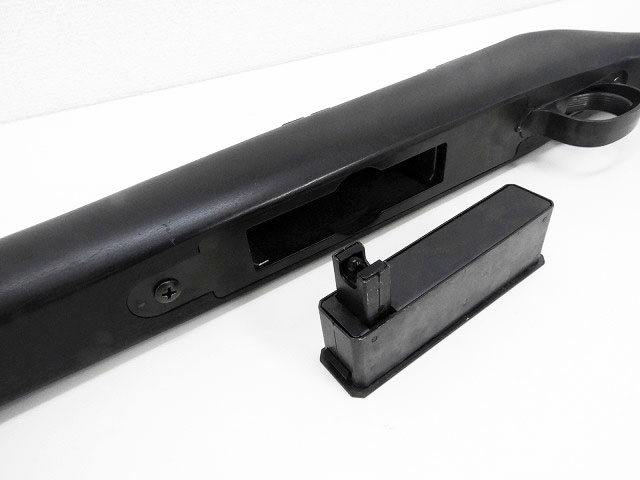 サンプロジェクト製の希少なM40A1木製ストック。ブラック塗装済み。ボルト欠品のためジャンク品扱いとなります。 ボルトがあれば発射自体は可能です。付属マガジンは金属製。