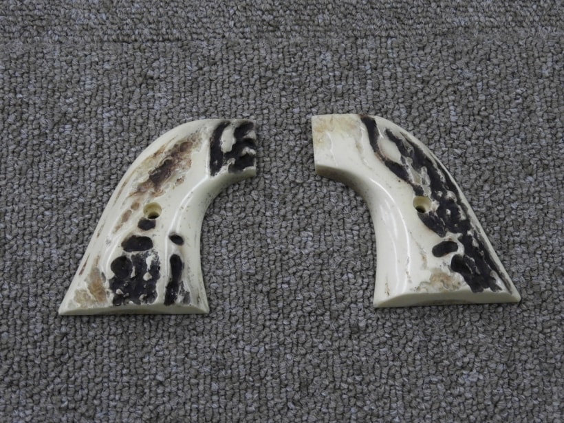 タナカ製シングルアクションアーミー用の樹脂グリップパネル。フェイクながら質感はかなり本物のスタッグ(鹿角)に迫っている。