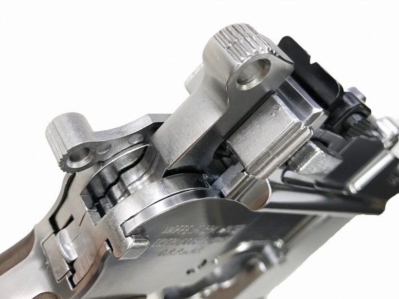 ・ABS樹脂製のスライドとフレームに、シルバー色のメッキを施した、メタリック仕上げ。「シルバーABS」!