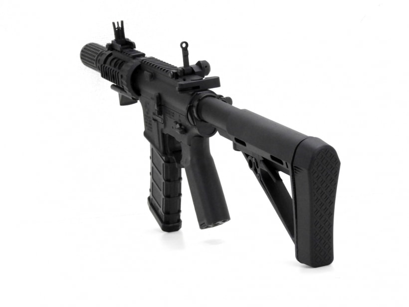 リアルでハードなリコイルショックを実現したBRSS装備の電動ガンのM4ショートカスタムのPMCにナイツサイレンサーを付属させた特別数量限定モデル。