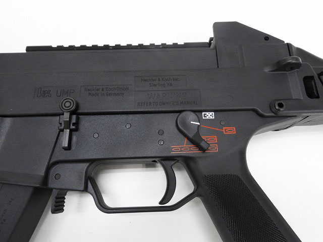 実銃メーカーであるH&K社のトレードマーク及び、外観デザインを再現したトイガンを製造する権利を独占的に有しているUMAREX社がH&K UMPを再現。正式ライセンス刻印入り。3面レイルセット/スコープマウント装備のDXバージョン