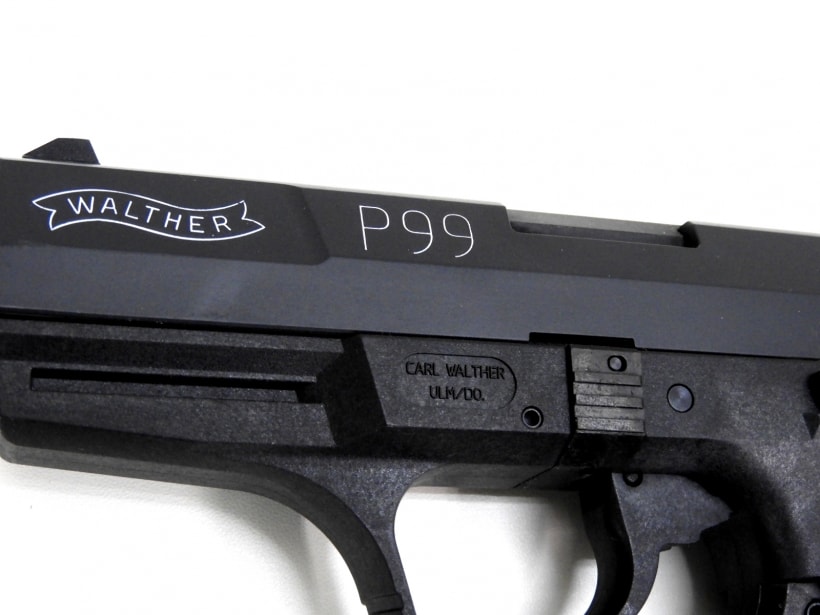 着脱可能な軽量製アルミサイレンサーは発射音を大幅に軽減する本格仕様。P99フィクスドスライドモデル。