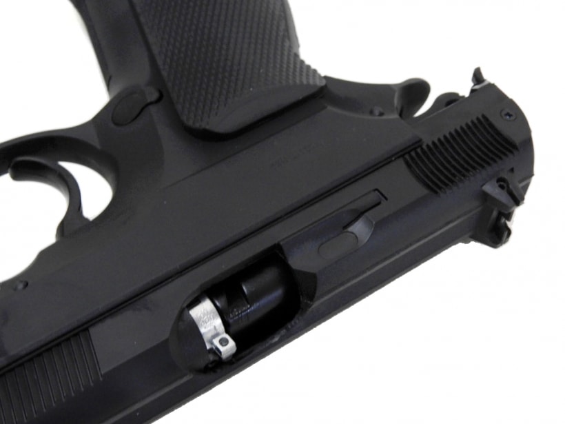 1975年から製造されたチェコスロバキア製の自動式拳銃、CZ75のコンパクトモデル。ショートリコイル、ダブルアクションに手動安全装置はコックアンドロック方式、弾倉はダブルカラムとなっている。9x19mmパラベラム弾を使用。