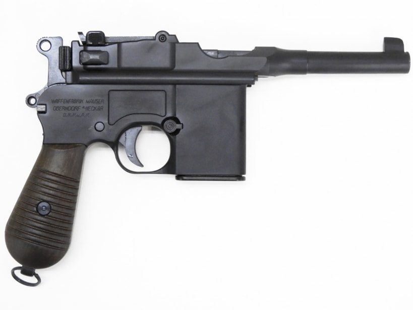 1896年にモーゼル兄弟(ヴィルヘルム・モーゼル、ポール・モーゼル)が開発した。このデザインは弾倉が銃把の前にあるため重心が前にあり、射撃競技銃のように正確な射撃が可能であり、ストックを併用するとカービンとして使用できた。「箒の柄(ブルームハンドル)」とあだ名された独特の形状をしたグリップは、掌の小さな小柄な民族でも関係なく使用できる利点があり、そのまま採用され続けた。この銃は馬上などでも使いやすいということで、清朝末期以降の中国の軍人や馬賊にも愛用された。同銃は100万丁以上生産され、旧式化してもなお中国を最大のマーケットとして1936年まで生産され続け、チャーチル・金日成・ホーチミンといった当時の著名人にも使用されている事でも有名である。他の自動拳銃に比べて倍近い価格だった事や、目を引くデザインだった事からステータスシンボルでもあり、まだ信頼性の低かったマガジン給弾式に比べて、信頼性の高い固定弾倉式だった事で、20世紀前半で最も知られた自動拳銃となった。 (by wikipedia)