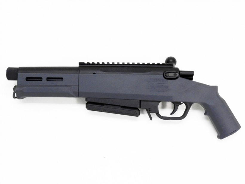 ボルトアクションでありながら、「ピストル」タイプと呼べる程のサイズまでコンパクト化している。