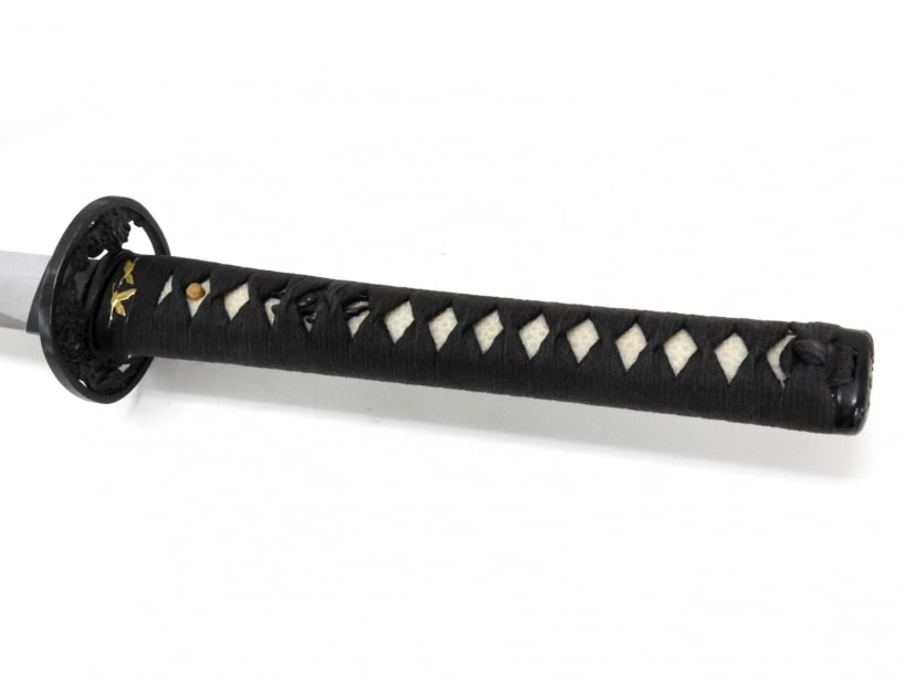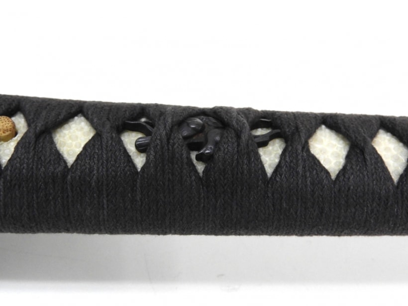 柄には経年感がありますが刀身はきれいな状態です。鯉口もしっかりとはまります。柄の鮫革は樹脂製と思われます。