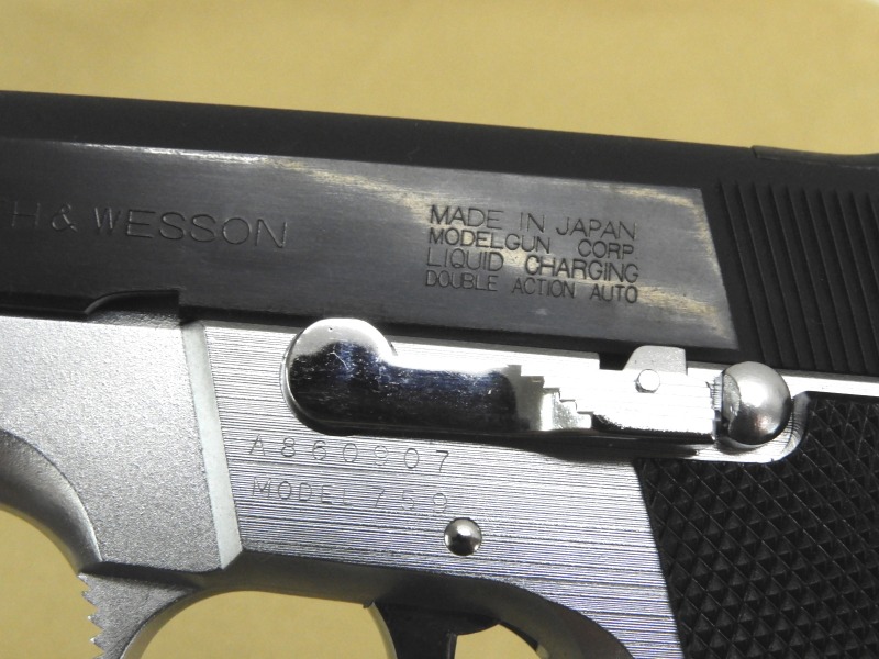MGCのS&W M759 シルバーフレームの固定スライドガスガン。M759はS&W M659をベースにカスタマイズされたもの。ツートンカラーのモデル。