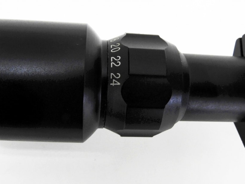 高倍率なのでもちろんフォーカスの調整ができます。ウィンテージ・エレヴェーションはクリックダイヤル式でツールやコインなどを必要としないタイプで即座に調整ができます。