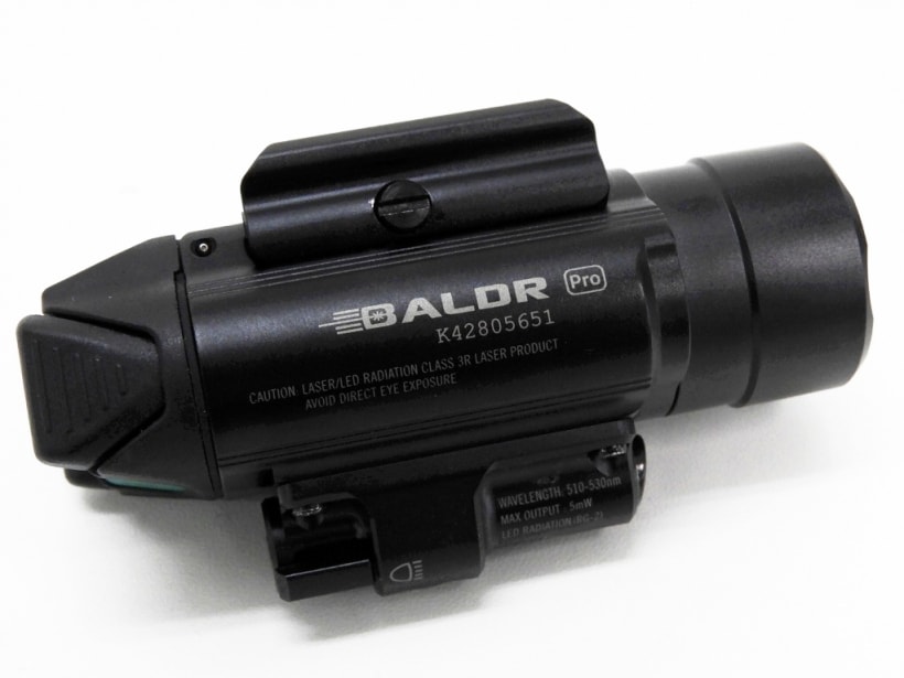Baldr Proは白いLEDとクラス3R緑レーザーを兼ね備えたプロ向けのライトです。2本のCR123A電池を搭載したBaldr Proは最大1350ルーメンを出力します。最大照射距離は約260メートルです。